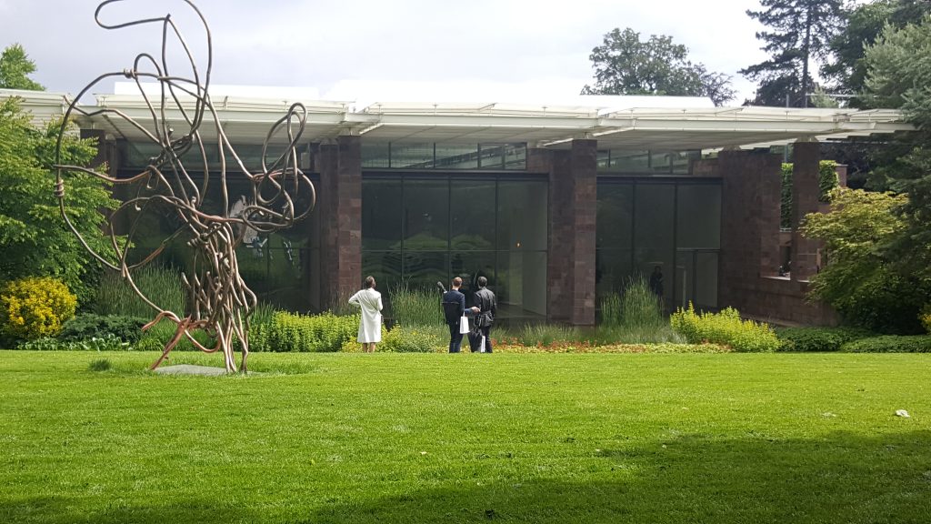 The two museums that are a must-do are the Beyeler Foundation and the Kunstmuseum Basel. The Beyeler building will remind you of The Menil Collection, and for good reason: Renzo Piano designed both. The museum is a long, low-slung structure, with daylight filtering in from above. However, the humble materials of cypress and painted steel at the Menil are replaced by luxurious stone and polished stainless steel at Beyeler. The collections share a similarly diverse collecting sensibility, featuring tribal, early-20th-century masters, and contemporary work. A striking Calder survey — combined with works by the Swiss duo Fischli/ Weiss — was on view. And nothing is more beautiful than sitting on the long bench opposite Monet’s monumental late Water Lilies painting. It stretches 30 feet. The end of the painting leads your eye to a glass wall and a view of a pond filled with actual water lilies — a wonderful, magical moment. The Kunstmuseum is the historic encyclopedic museum of Basel. Josef Helfenstein, former director of The Menil Collection, is now its director and arrived this year to inaugurate a new gallery wing. Designed by Swiss architects Christ & Gantenbein, it’s a 30,000-square-foot stone structure designed to show contemporary art with voluminous open spaces. The current exhibition, “Sculpture on the Move 1946-2016,” was universally well regarded.