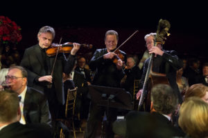 BY Shelby Hodge //Orchestra musicians Sergei Galperin, Ferenc Illenyi, Michael Gorman perform at the Houston Symphony Wine Dinner in 2018. Performances been canceled due to COVID-19.