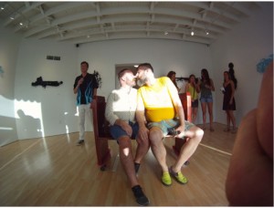 Samara Gallery, the newcomer to Isabella, is showing Houston-based David Graeve, who introduced a new performative element to his practice with the surprising presence of opening night's kissing bench. Shown: the artist's “Civil Liberties—Passionate Kiss," as enacted by CAMH director Bill Arning in a lip lock with partner Mark McCray (hurry, closes June 6).