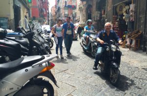 I’ve not seen one fender bender, or the road rage we witness on our city’s streets and freeways. Neapolitans know how to move ever onward on cobblestone streets, narrow and wide.