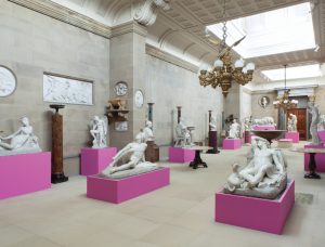 The Duke and Duchess [of Devonshire] are such wonderful people, and they asked me to do the sculptures [on the lawn], but then they wanted me to do some kind of intervention in [Chatsworth]. It is such a vast house of such historical importance, and I was very uneasy about what to do. Finally the Duke said, “Michael, the Duchess and I really think you’ve been intimidated by the house.” And I said, “Yes, I am. That’s very true!” And he said, “I want you to tell me right now: What would you do if you didn’t feel worried?” And I said, “What I’d like to do is to have you change all of the plinths on all of the sculptures in the house and make them magenta.” And he said, “That’s fine! That’s what we’ll do!” And it actually makes the sculptures come alive. It worked better than what I could have ever imagined. There is a book in preparation, which will be called Michael Craig-Martin at Chatsworth, and there are the most fabulous pictures of all of the things I did there. It’s a stunning document, and it will be finished in the next few months.