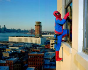The Verucruz-raised talent, who has been touted by Hi-Fructose, nods to such byways as Michoacán lacquered plates with their beautiful florid florals. At Alida Anderson Art Projects, Mexican photographer Dulce Pinzón’s series “The Real Story of the Superheroes” is an apt rebuttal of a certain presidential candidate.