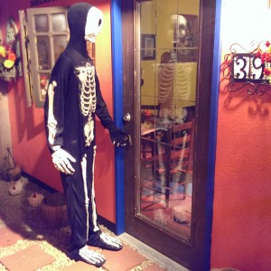 Our investigations took place during a four-hour period in the late afternoon, then during a return visit at nightfall, when, armed with Holy candles and an offering of Day-of-the-Dead marigolds, we strolled amidst stone angels and perused the graves, many of whose memorials listed birth dates before or right after the Civil War. There are presences at Olivewood, and a sense of a faded past, but we cannot say we were disturbed by ghosts. The looming nearby lights of Grocers Supply kept our trek rooted in the present century, at least on the east side of the cemetery. The west side, at the cemetery’s entrance, was another story. Parking down a lonely street, where dilapidated houses and a few new green-build homes stood guard, a flashing orb in the car’s back-up camera was a chilling sight.
