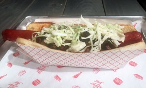 Then there are the hot dogs, which are 100 percent beef, split and grilled. Of course, there’s a classic option and one topped with chili queso, but the real standout is the Big Frank — a footlong dog topped with your choice of pulled pork or chopped brisket, BBQ sauce and slaw (the brisket topping does not disappoint).