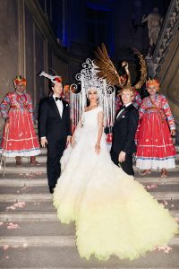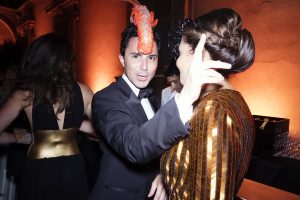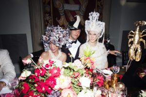 The second night was held in the grand courtyard and the piano nobile of the palazzo. The Surrealist-themed bal-en-tête was an elegant rendezvous of couture dresses and dreamlike headpieces paying homage to everything oneiric. For this evening, I was better prepared, having commissioned London–based artist Tuesday Riddell to create a huge lobster chapeau encrusted in Swarovski crystals, all in reference to Salvador Dalí and Isabella Blow.