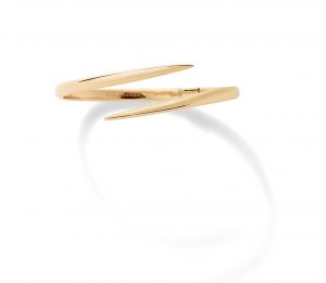 I’m a symmetry nut, so I had this challenge in my mind to create something perfectly symmetrical but impossibly delicate, that also makes a statement and is really graphic. The X ring was the jumping-off point for the entire collection. Because of my background as an artist, I wanted something sculptural. When you put it on, it looks like a painting or a tattoo. It’s very minimal, but when you take it off, it has a life of its own as an object. It’s like armor — you feel tougher when you put it on, but not at the expense of feeling elegant.