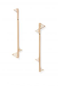 Unlike big statement jewelry, Zuckerman’s designs are classic enough to be added to her collection and stay there. “I love the idea of super-sharp, refined, minimal shapes without a ton of embellishment and then one strong, geometric diamond,” she says. “Understated but incredibly luxurious.”