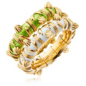 Through the end of May, visit the store to browse the pieces — standouts include a diamond, emerald, and opal ring; a pair of 18K yellow-gold Jean Schlumberger bracelets; and sparkly sapphire earrings.