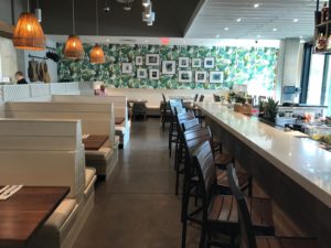 Designed by retail design firm MG2, the restaurant evokes the same breezy atmosphere as Tommy Bahama’s iconic resort wear. The 250-seat bar and restaurant includes a spacious patio and options for private dining.