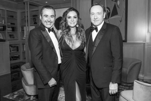 PC Moment: There were many exquisite moments in this evening — including Miz Thrash’s vision for décor featuring three striking tables arrayed poolside carried out by Richard Flowers, and the three-course seated epicurean dinner crafted by SaltAir Seafood Kitchen, B&B Butchers, and Grotto Ristorante, with Brasserie 19 contributing opening bites. Natch, the lively tête-à-tête between Spacey and Miz Thrash was another high point. Spacey got into his House of Cards character, Francis Underwood, for the Q-and-A held poolside; Spacey also good-naturedly obliged by posing during the cocktail hour for party pics.