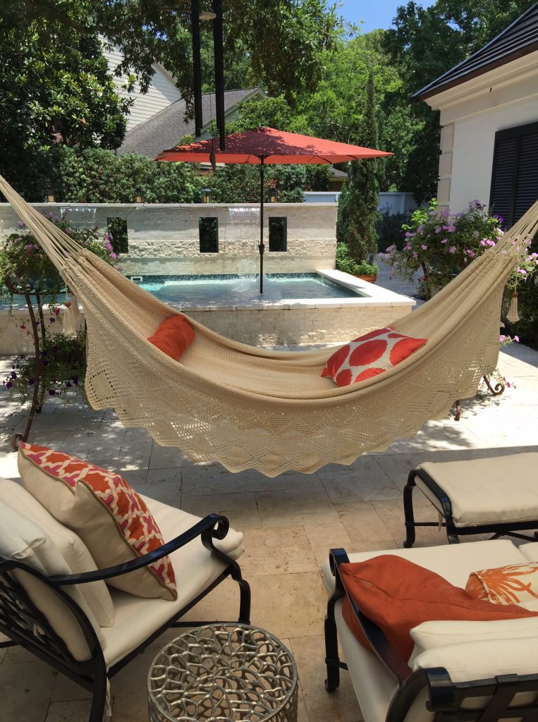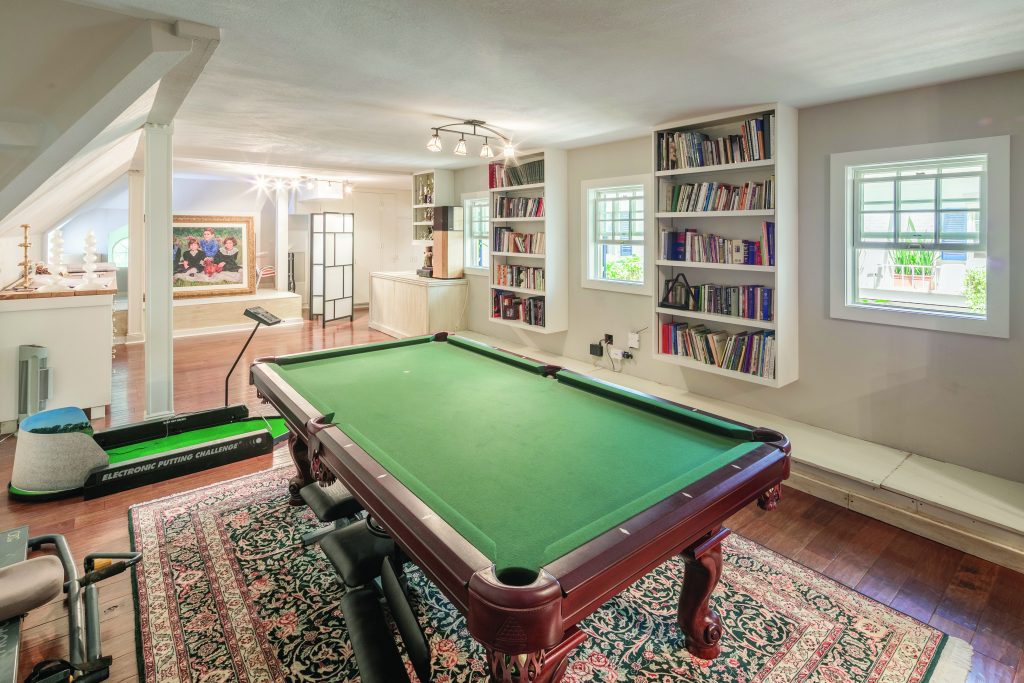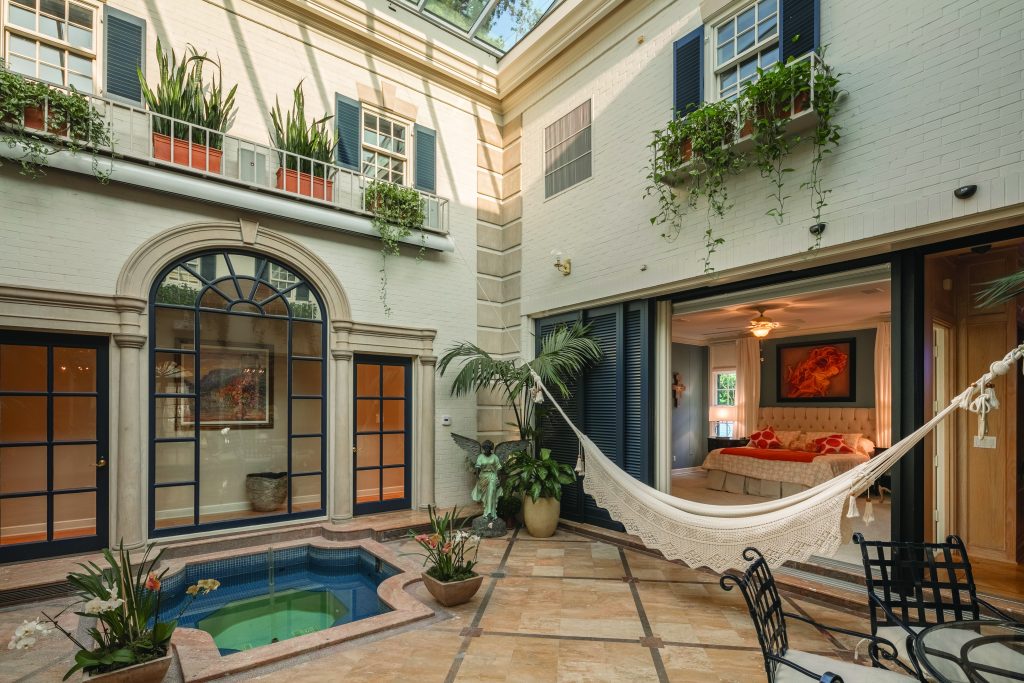 To our list of elements we love about this house we add the rooftop sky deck with treetop views, the spa pool with waterfall that echoes the sound of flowing water from the fountain in the atrium, the Programme Martin system in the double master closet, the vast game room on the second floor, and the outdoor bar stool seating at the retractable kitchen window.
