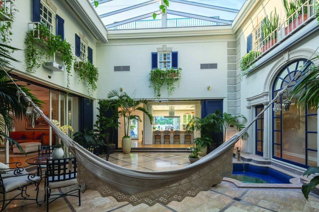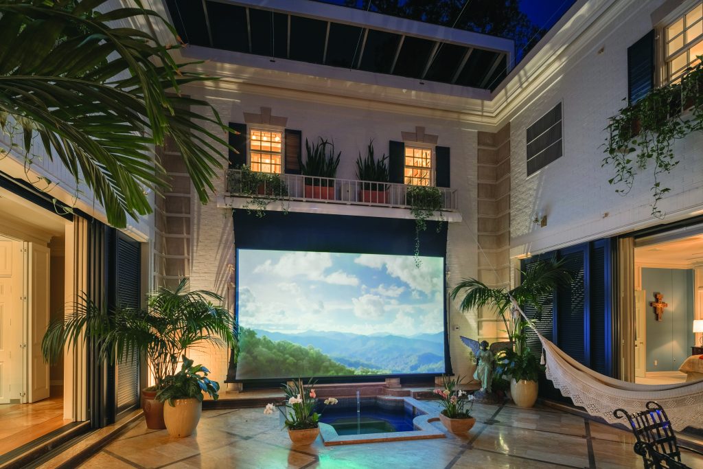 Those would include the 205-inch screen which scrolls down from the second floor of the air-conditioned atrium. “In the evening, you can open the roof,” Michael says, “and you are outdoors in your house watching whatever you want to be watching on the big screen.” Monday Night Football comes first to his mind.