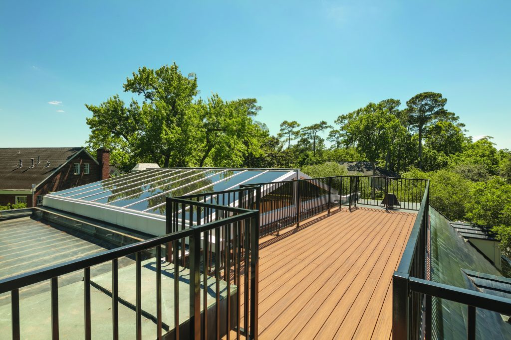 “When we do our charity fundraisers where guests pay $1,000 a person, that’s where we cook,” Michael says. Tables are set in the dining room and in the central atrium, one of several unique features in the house.