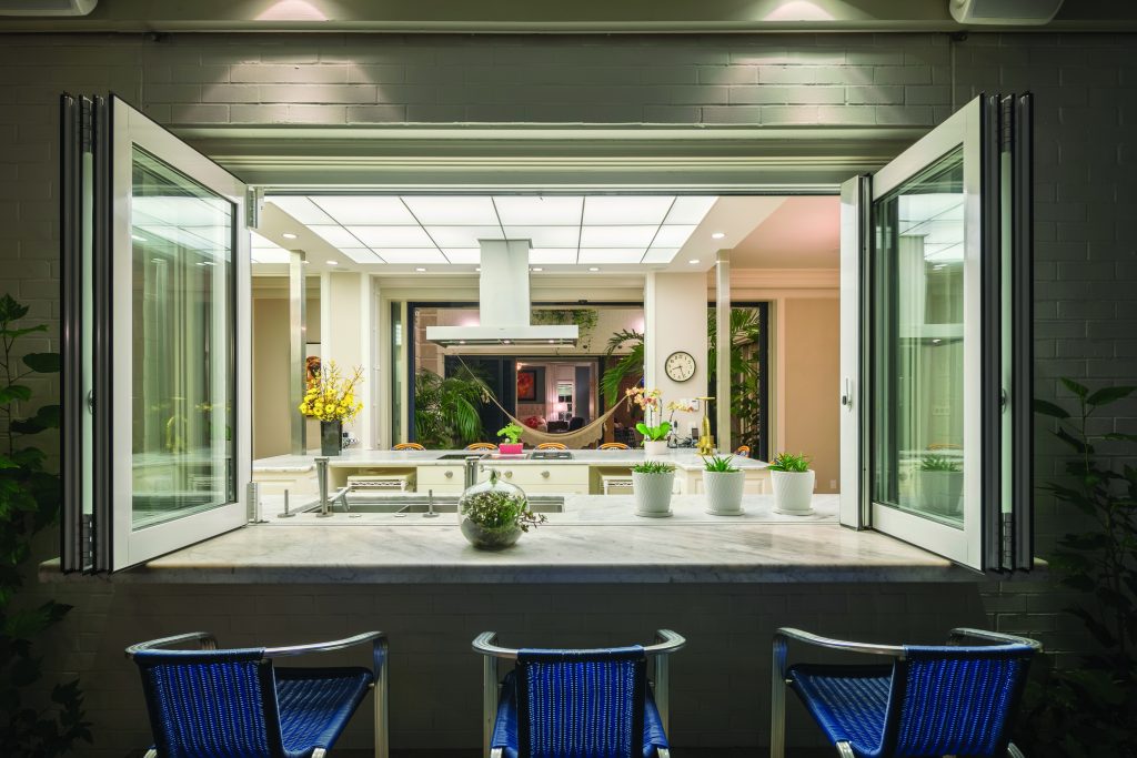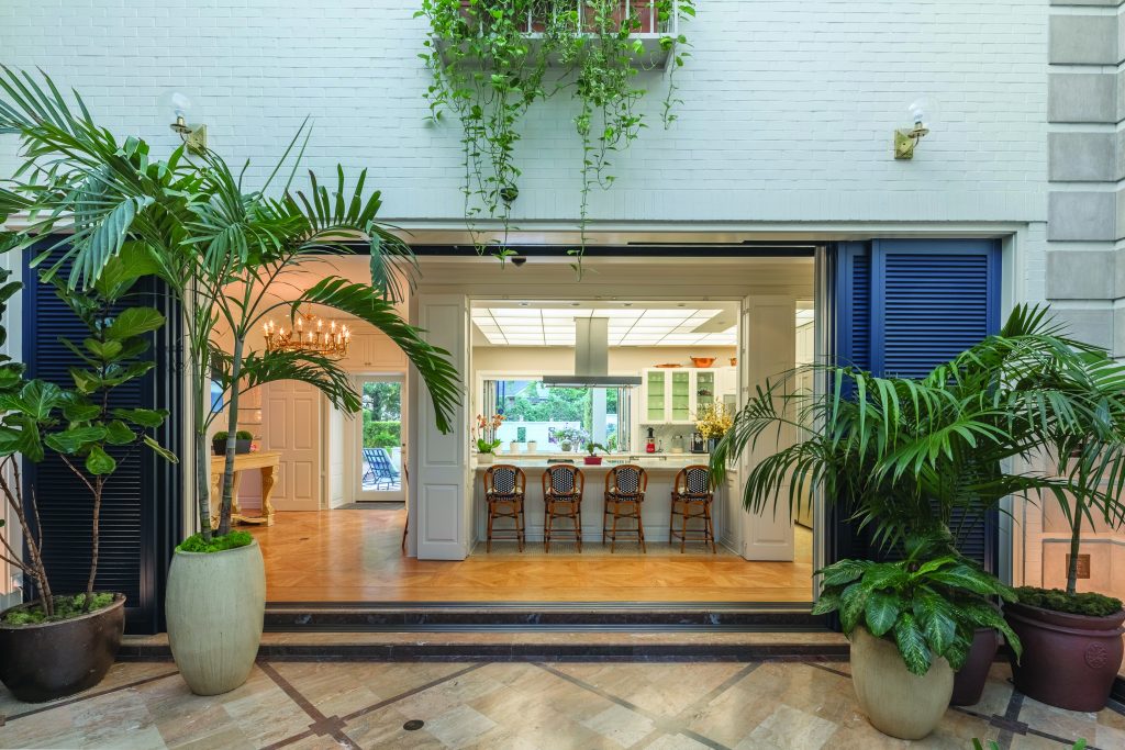 When the glass roof of the atrium in the Hunters Creek home is open along with the kitchen windows that lead to the pool terrace, it’s a grand indoor/outdoor feel. As Food & Wine Hall of Fame chef Michael Cordúa says of his home, “It becomes one room and you don’t know where you are. Am I inside? Am I outside?”