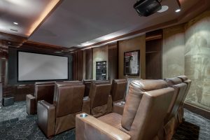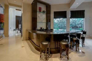 The home is perfect for entertaining your whole team of friends with four living areas, two dining areas, and a gourmet chef’s kitchen, finished with stunning African Macassar ebony cabinets.