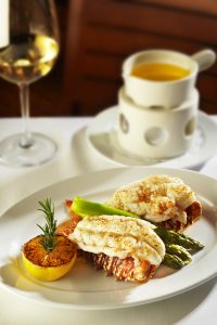 Happy hour is every Monday through Friday, 4 to 7 pm. On Sundays, the restaurant offers a surf & turf special for $55 a person: There’s a first course of either French onion soup, a Caesar salad, or house salad, followed by an 8-ounce filet to pair with either shrimp scampi, a crab cake, or sea scallops.