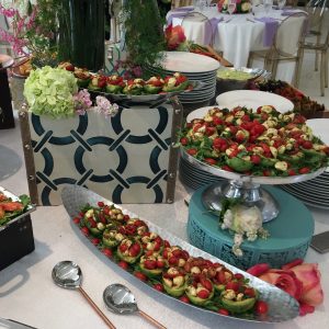 Those familiar with Tony’s lunch menu were swooning over the luncheon headliner — Summer Seafood Salad, a Lynn Wyatt favorite, composed of Maine lobster, jumbo lump crabmeat, Gulf shrimp and mango with a citrus ginger vinaigrette. The aroma wafting up from the still warm from the oven Asparagus Cambozola Quiche surely had mouths watering while the Caprese Stuffed Avocados (tomato, buffalo mozzarella, torn basil and a balsamic splash) could not be resisted. And for those with a healthy bent, the Summer Vegetable Harvest (three colored carrots, peppers and zucchini), accompanied with heirloom tomato flatbread and offered with avocado mousse and fresh mango salsa, was just the ticket.