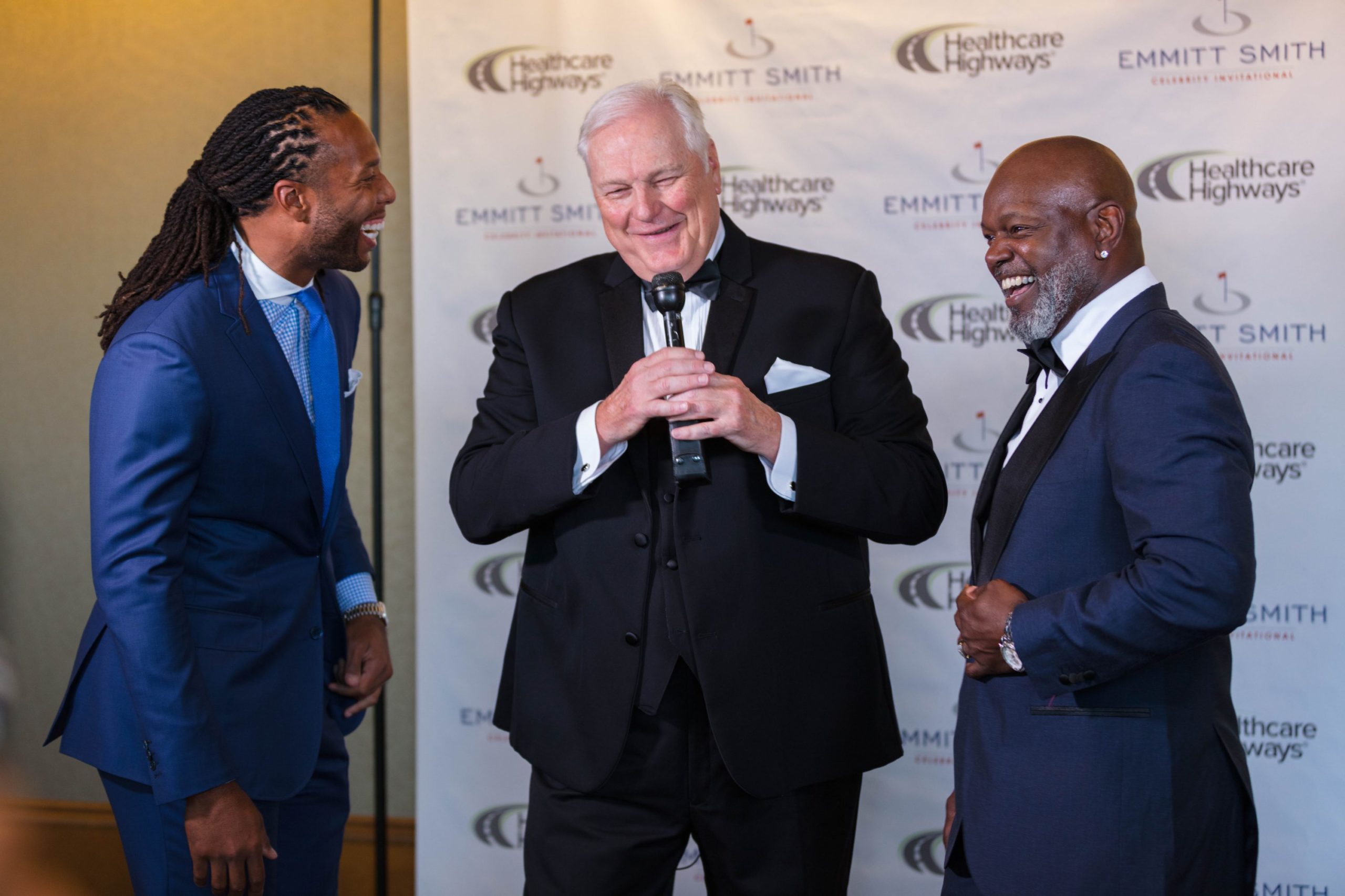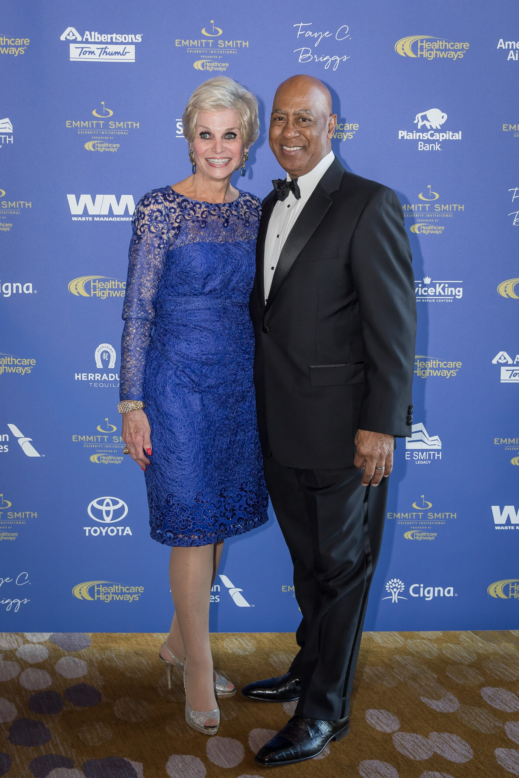 PC Moment: The 8th Annual Emmitt Smith Celebrity Golf Invitational & Gala to benefit Pat & Emmitt Smith Charities began its weekend-long celebration under the Friday night lights. A frenzy of celebrities walked the red carpet during the Gala, including Marianne and Roger Staubach, Torii Hunter, Dak Prescott, Ezekiel Elliott and many more remarkable stars. A high-point came when Staubach presented Arizona Cardinals wide receiver and 2017 Walter Payton NFL Co-Man of the Year Award winner Larry Fitzgerald Jr. with the Roger Staubach award, which honors sports or entertainment professionals who have positively influenced the lives of young people.