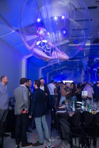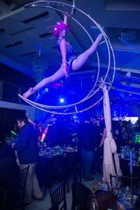 Disco balls, LED light shows, larger-than-life streaming videos, aerial entertainers and killer DJs Amy Robbins and Triarchy, who kept the music blasting for all five hours, contributed to the scene.