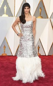 Some of the Oscar’s leading ladies opted for a metallic color palette like Emma Stone — who snagged the Best Actress Oscar for her role in La La Land — who sparkled in a gold Givenchy couture frock, and Janelle Monae, who appeared in Best Picture nominee Hidden Figures as well as Best Picture winner Moonlight, donned an extravagantly bejeweled Elie Saab number.