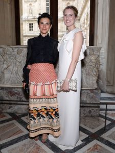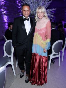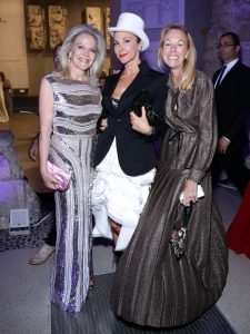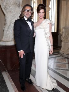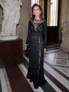 Darling friends came from far and wide: Tracey Amon, in from New York, was resplendent in copper Chanel. Gela Taylor, wife of Duran Duran’s John Taylor, wore Gucci. Actress and Bond girl Olga Kurylenko turned heads in a black-and-gold Lanvin gown. Christopher “Kip” Forbes (chairman of American Friends of the Louvre), was there, as were Vogue editor Hamish Bowles; D.C.-based Kassidy Choi Smith Leigh, sporting a stunning flower headpiece; Jean-Luc Martinez, president-director of Musée du Louvre; Crystal Lourd, in from L.A. and wearing a gown by close pal Tom Ford; Valesca Guerreand Hermès; artist Marquis Retna from L.A.; designer Herve van der Straeten; Van Cleef global CEO Nicolas Bos and North America CEO Alain Bernard, from London; Marina Abramovich; Billy and Julie Macklowe, from NYC; from San Francisco, Alexis and Trevor Traina; Paris Biennale CEO and mega dealer Benjamin Steinitz; Esquire editor in chief Jay Fielding; Lord Harry Delmeny of Sotheby’s; and British artist Mat Collishaw. The fashion crowd included Bruno Frisoni, creative director of Roger Vivier; designer Naeem Khan; and the red-sole king himself, Christian Louboutin, who led the Parisian fashion troops.