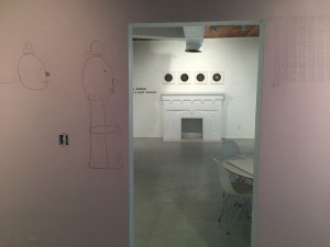 While small-scale drawings in frames paired with ephemera were hung in an understated manner in the main gallery entrance space, the side room, with its site-specific wall drawings, stole the show.