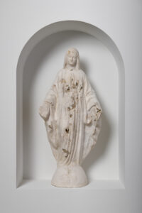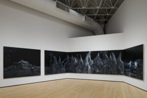 Valdez’s adopted home of Houston also plays a significant role in this CAMH exhibit. The Hole/In Memory (For Joe Campos Torres) is a collaboration with artist and partner Adriana Corral. Made of gypsum, shells and soil from Buffalo Bayou, The Hole (2024) is inspired by the legacy of José Campos Torres, who was tortured by Houston Police Department officers and later died.
