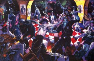 Marin’s defense of Valdez’s retelling of the Zoot Suit Riots is simple. “I said, ‘You know, every major museum I’ve visited around the world has some version of The Rape of the Sabine Women. This is the Chicano version.