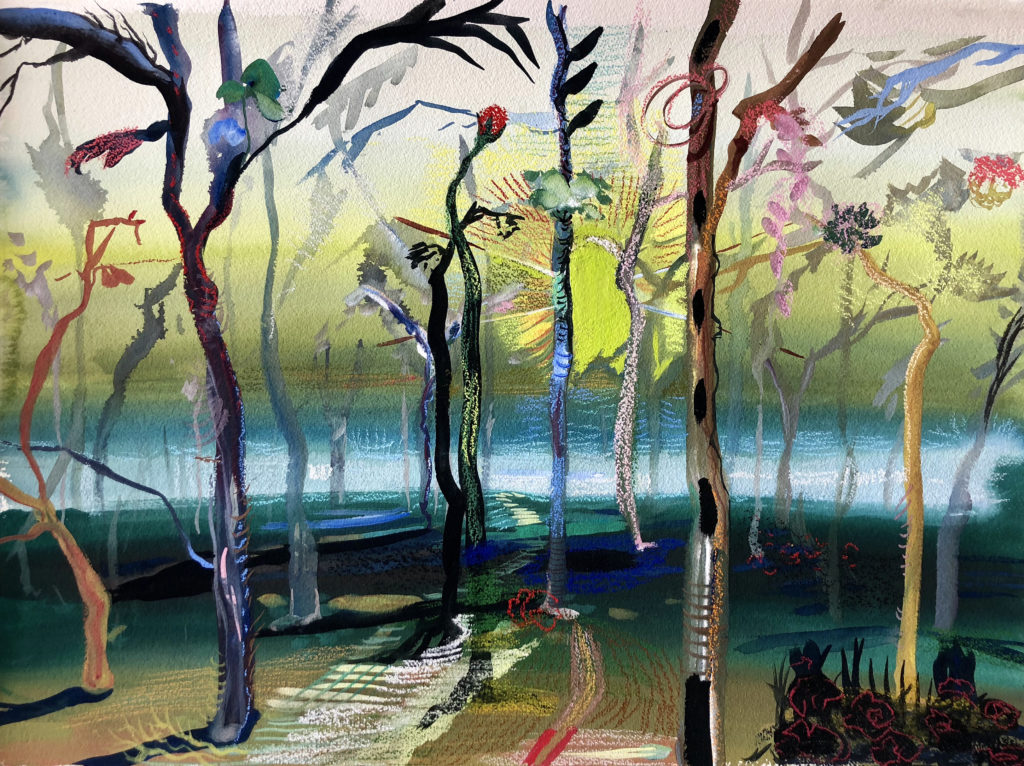 Along with select works from her exhibition that will be incorporated into the show, Frank has created more than 30 new drawings to be used as backdrops, as well as animated and projected at different points of the performance. She’s also worked closely with the show’s costume designer, Tony Award-nominated Constance Hoffman, to replicate her hand in pastel and gouache on custom textiles, creating a hand-drawn feel throughout the entire production.