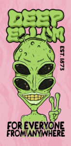 Local artist Hunter Moehring‘s banner welcomes anyone and everyone to Deep Ellum. An illustrator and musician, his work focuses on album covers, tour posters, and apparel design for musicians. He also creates designs for Dallas venues, bars, skate shops, and clothing brands. He loves screen printing posters and draws inspirations from vintage sci-fi, old westerns, bronze age comic books, skateboards, and punk rock.