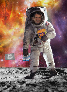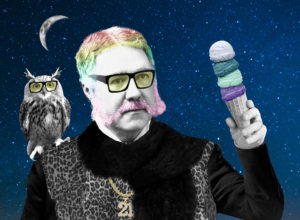 “I came across the iconic image of Abe Lincoln,” McLaurin told PaperCity. “I knew I had to put Abe in some fantastical, updated situation. As my father had recently purchased a Vespa, I felt Lincoln needed to get out and get some air.”