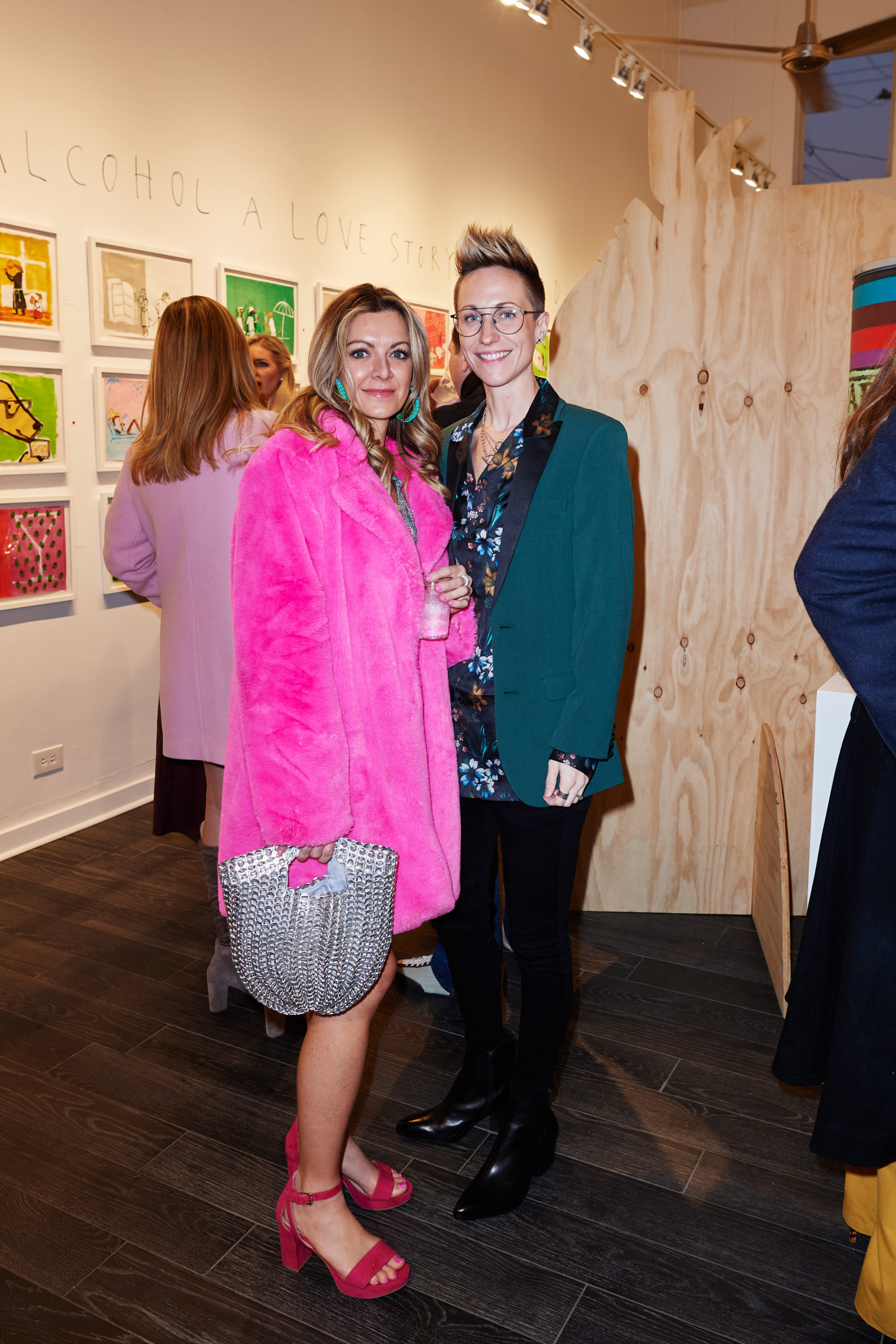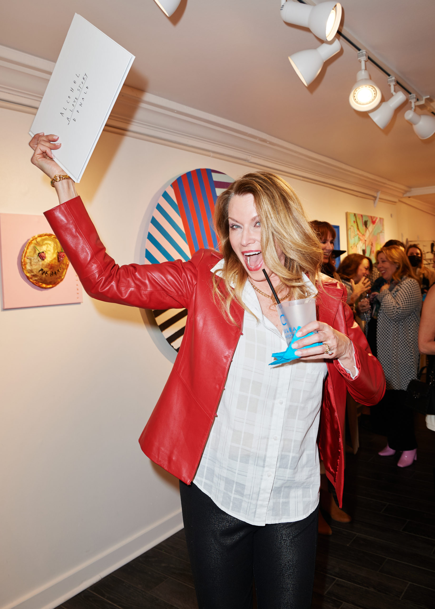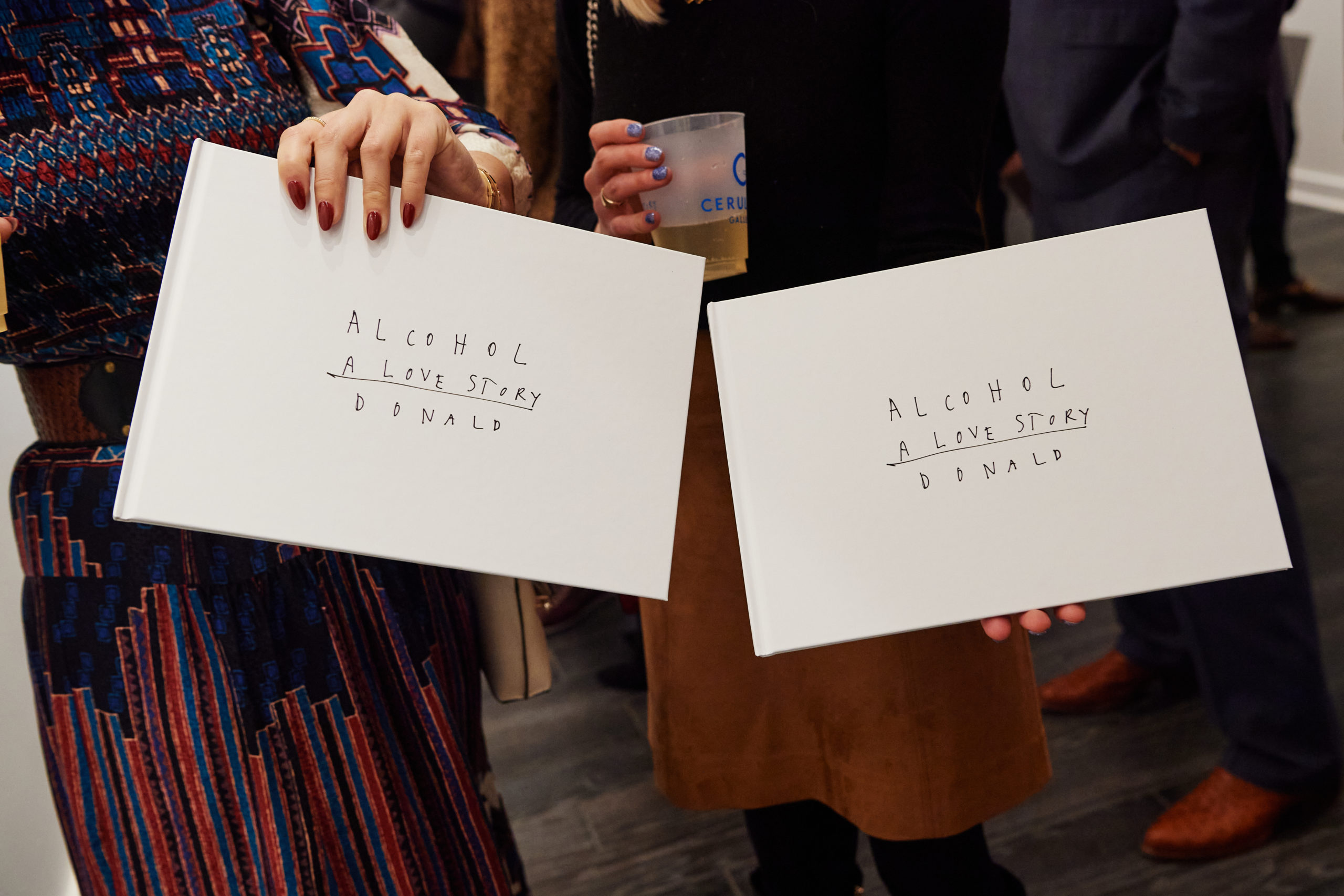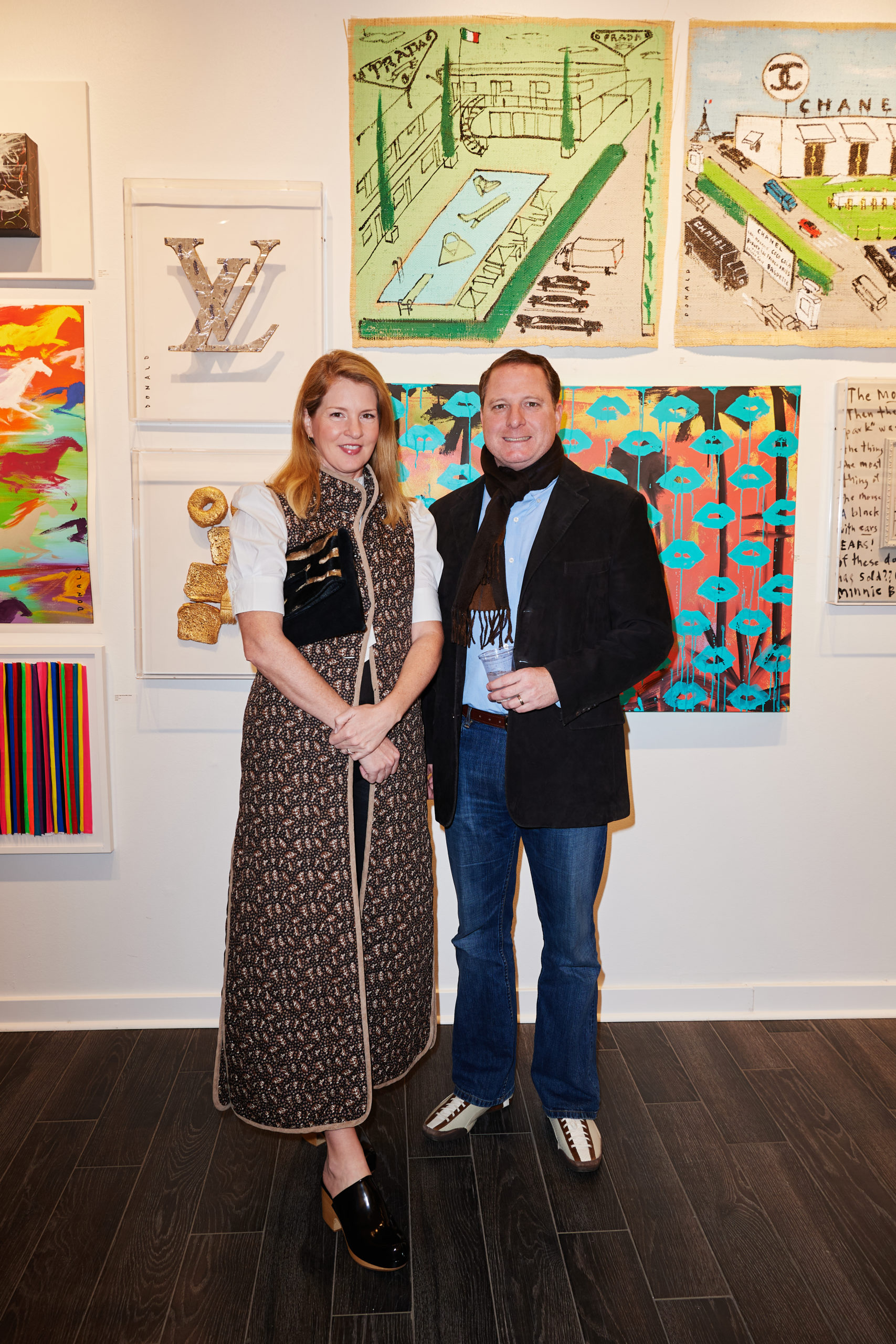 Max Trowbridge sauntered in wearing a leopard Paco Rabanne blazer alongside Capera Ryan, Joyce Goss, Mary Steen, and Francine Ballard (up from Houston). Spotted in the queue snaking through the back room of the gallery waiting to have their copy of “Alcohol: A Love Story” signed was Luis Araujo, Jerry Mooty, Kristen Vasicek, Heath Burnett, and Lisa and Wayne Moore. The good news was that those waiting had some Champagne Lallier bubbles to sip while thumbing through their purchase. And how was the artist personalizing the books? In a very Donald way — sporting DIY pink duct tape emblazoned with his name.