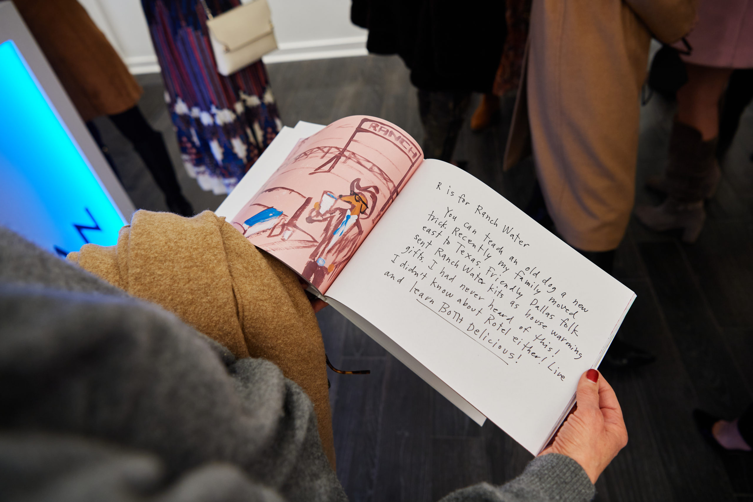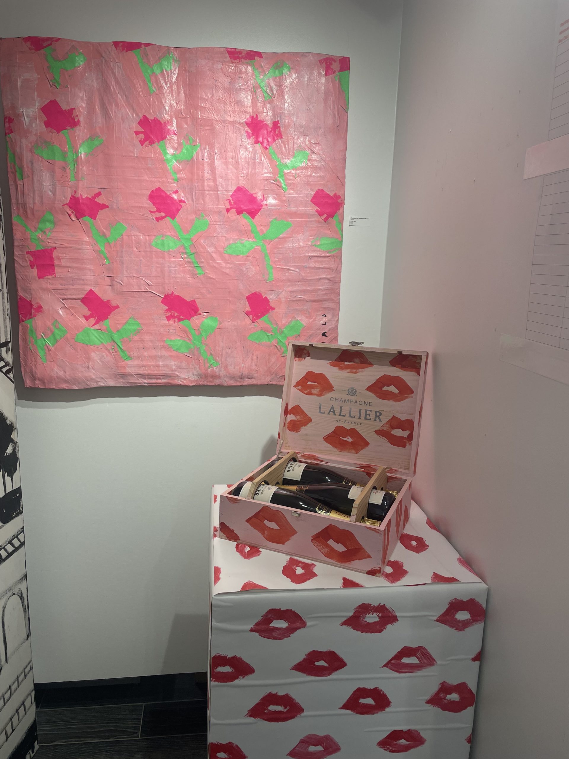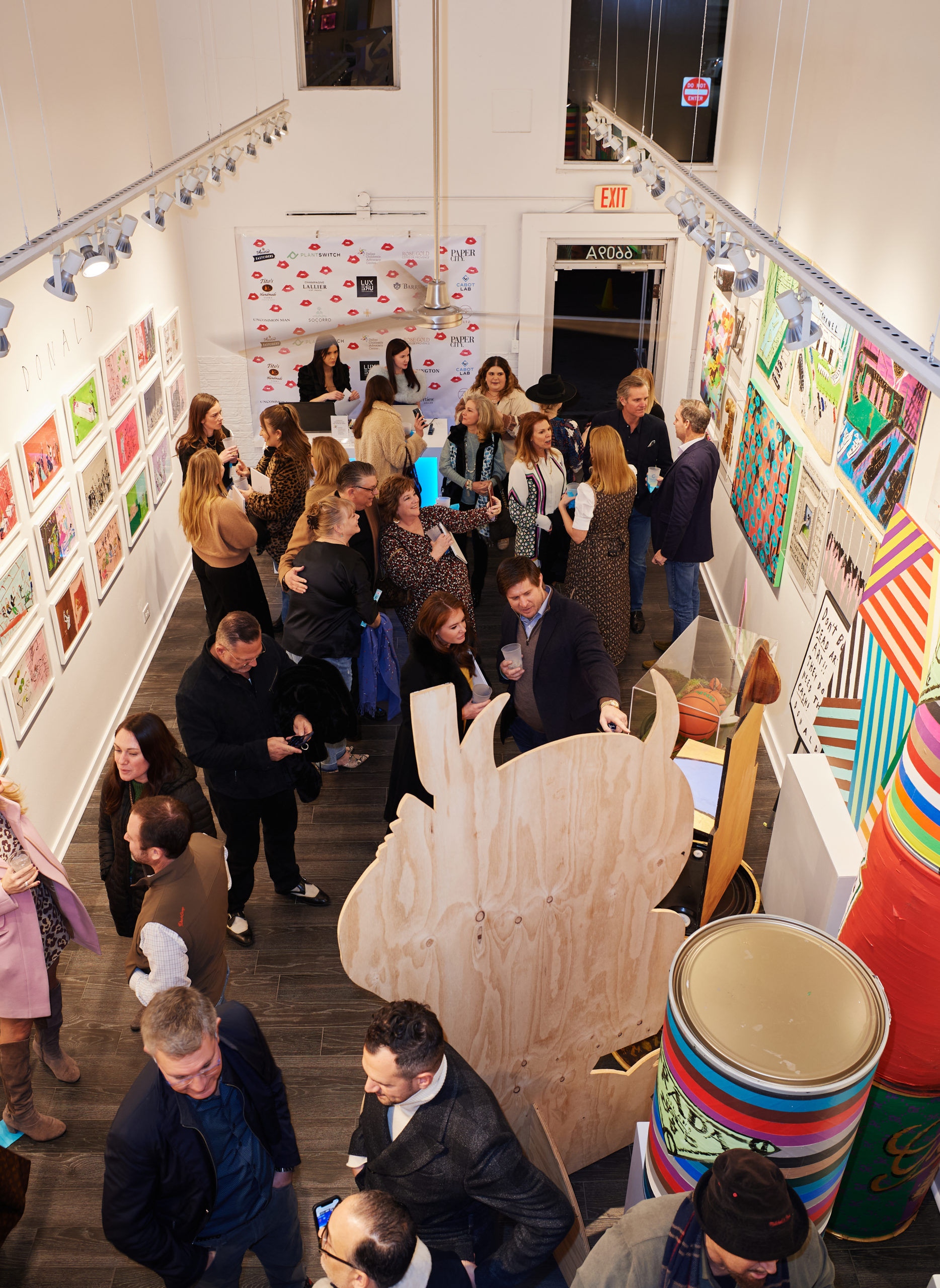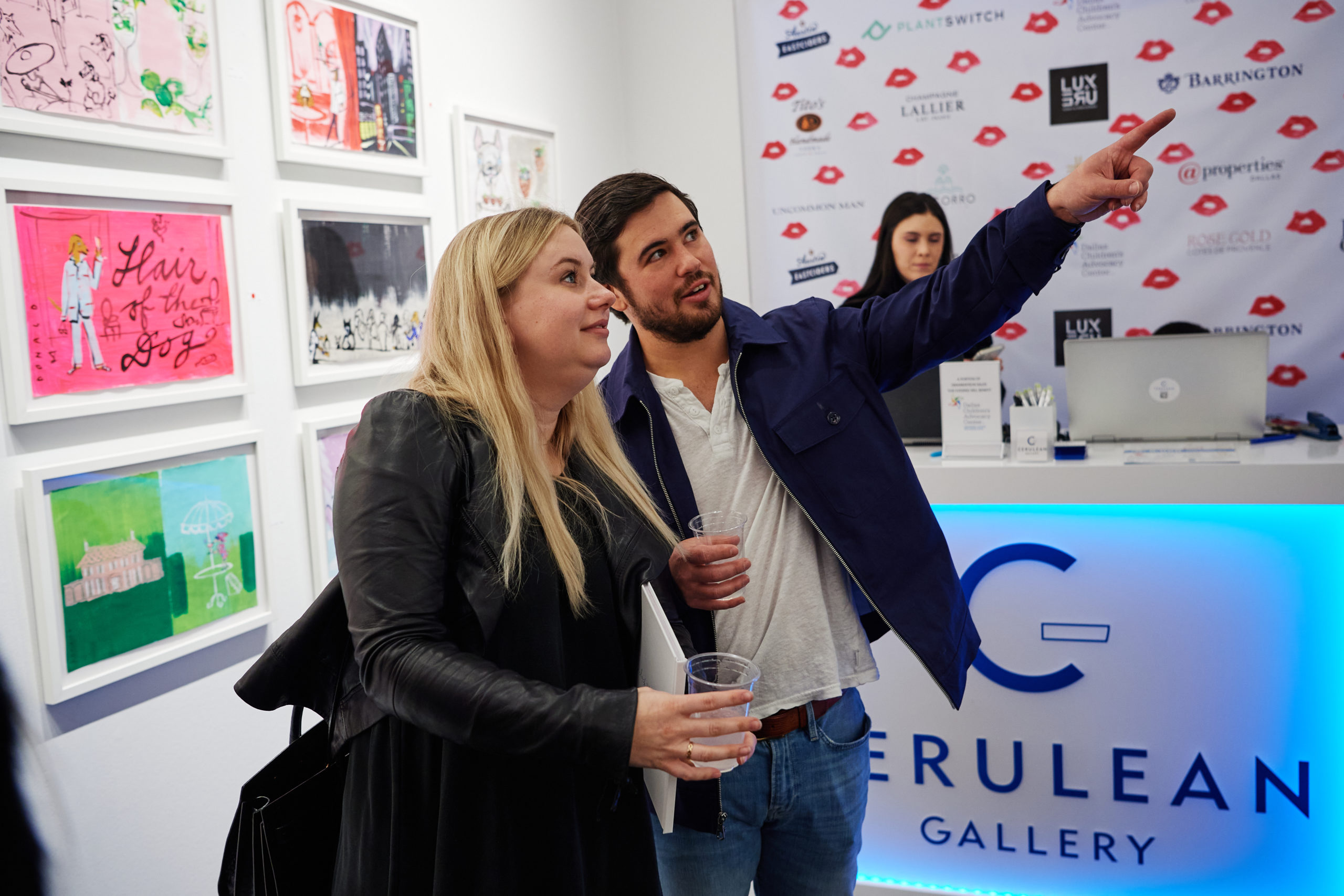 Max Trowbridge sauntered in wearing a leopard Paco Rabanne blazer alongside Capera Ryan, Joyce Goss, Mary Steen, and Francine Ballard (up from Houston). Spotted in the queue snaking through the back room of the gallery waiting to have their copy of “Alcohol: A Love Story” signed was Luis Araujo, Jerry Mooty, Kristen Vasicek, Heath Burnett, and Lisa and Wayne Moore. The good news was that those waiting had some Champagne Lallier bubbles to sip while thumbing through their purchase. And how was the artist personalizing the books? In a very Donald way — sporting DIY pink duct tape emblazoned with his name.