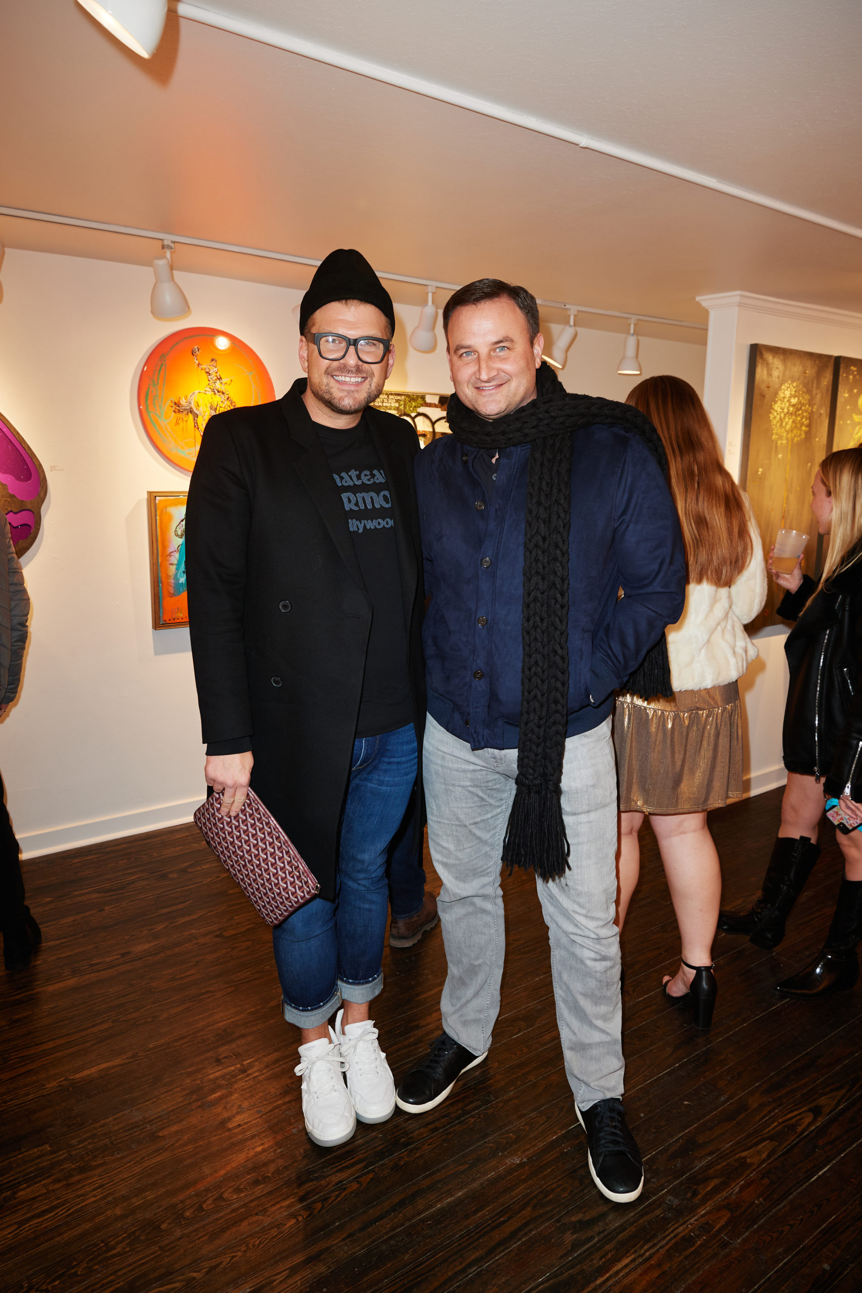 Cerulean Gallery in Snider Plaza welcomed a chic crowd that ran the gamut from a few octogenarians to a gaggle of girls who look like they probably walked over from the Pi Phi house (the Gallery is directly adjacent to Southern Methodist University). Best dressed was Reed Robertson looking very boy-on-the-go in a Frame black coat, Chateau Marmont sweatshirt, Goyard clutch, and Valentino sneakers. And when I asked about his hat, he replied, “My fabulous chapeau? It’s Gigi Burris.”