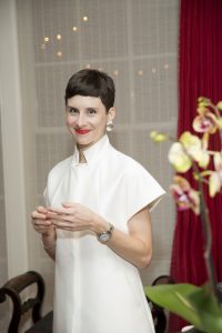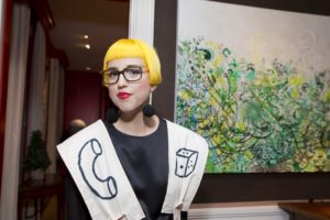 BY Catherine D. Anspon //Patricia Restrepo poses with a Ryan McGinness canvas.