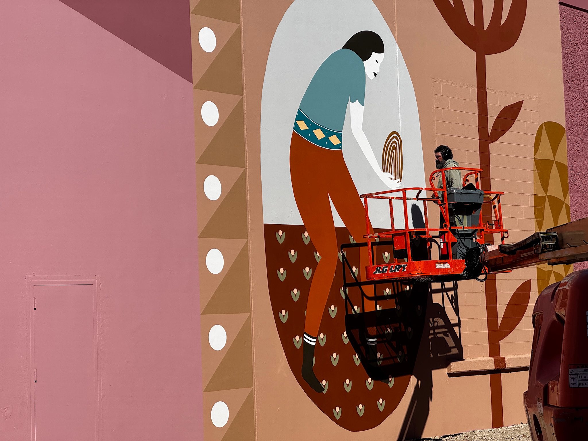 Wilkinson, Murray says, has been a close friend and supporter of M2G from the beginning. His new mural, she adds, has been the “most beloved mural in that space. People are just mesmerized by it. It is incredible what he can do with scale.”