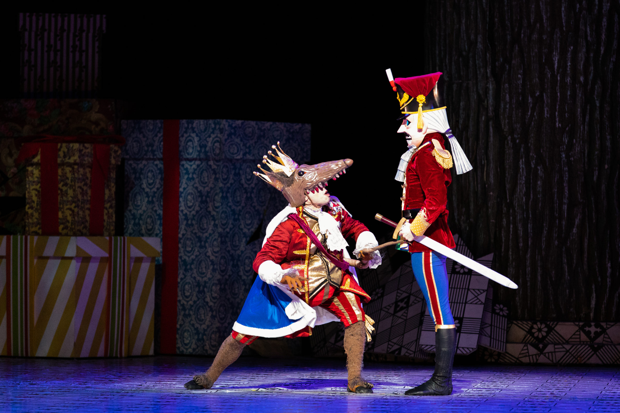 Welch premiered his exuberant vision of the time-honored holiday ballet in 2016 and delighted audiences with myriad surprises such as the snowfall that not only gently showered on the dancers but also drifted from above onto the audience. The ballet notes that 575 pounds of paper-made flurries drift down on stage during the Snow Queen visit each performance. It was a melting snow, however, that lightly showered the audience. In a moment of Nutcracker joy, confetti showered down on the stage and the audience as well.