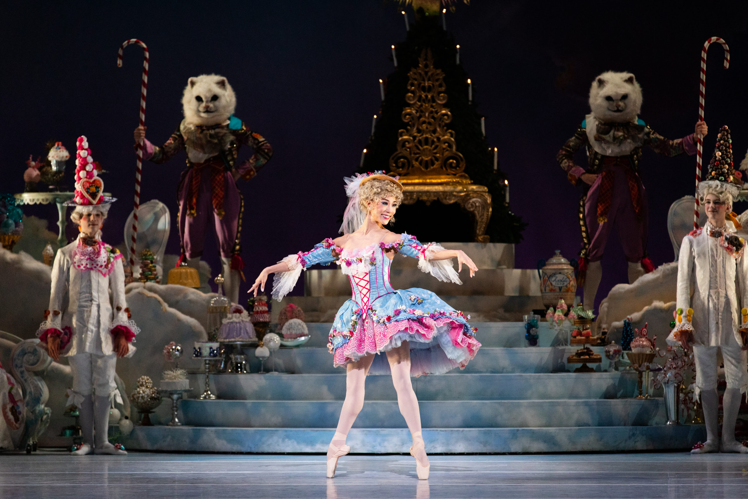 Nevertheless, the magic of this holiday tradition glowed and with Welch’s brilliant choreography and incorporation of all 70 of the company‘s dancers, with acclaimed British designer Tim Goodchild‘s remarkably beautiful costumes and sets, lighting design by Lisa J. Pinkham and Wendall K. Harrington‘s phenomenal projections, little was diminished.