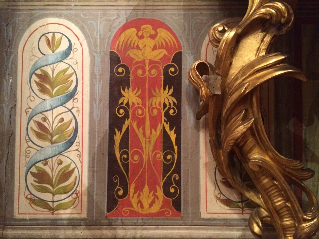Three years ago, Earl and I visited Palazzo Doria Pamphilj, and I was smitten. Minutes after entering this magnificent 17th–century Roman palace, I was captivated by the elaborately painted ceilings in the four salons that hold the family’s famous picture galleries. Exquisite hand-painted grotesqueries span the ceilings and continue down the sides of shuttered windows to terra cotta floors. Each salon has a bevy of marble portrait busts and chairs gilded with gold and upholstered with Genoese velvet.