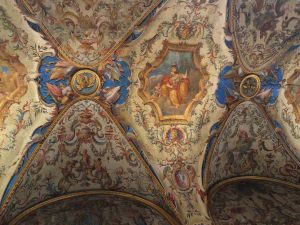 As I entered the salons, I hardly noticed the paintings or the busts. Even the most treasured painting in the collection, Velasquez’s famous portrait of the Pamphilj family pope, Innocent X, I appreciated in haste. My eyes kept straying toward the ceilings.