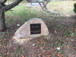 Alongside a hilly rise in the back, a grand monument formed from a boulder commanded our attention; its emphatic bronze plaque bore in hand-written script — the artist’s signature — the name of the illustrious painter interned there, Jackson Pollock.