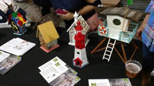 The avian roost collaborations are a two person pairing, one Sawyer Yards resident artist with another artist or a public figure. Odd bird pairings featured include Mayor Sylvester Turner/Nicola Parente, Rod Ryan/Taft McWhorter, former Mayor Annise Parker/Michael Golden, David Adickes/Justin Garcia, Sharon Koprova/Chris Silkwood, chef Monica Pope/Susan Tietz, Heights realtor Bill Baldwin/Patrick Palmer, and weatherman Frank Billingsley/April Murphy. Bids begin at $100 and appropriately benefit the Houston Arboretum & Nature Center.