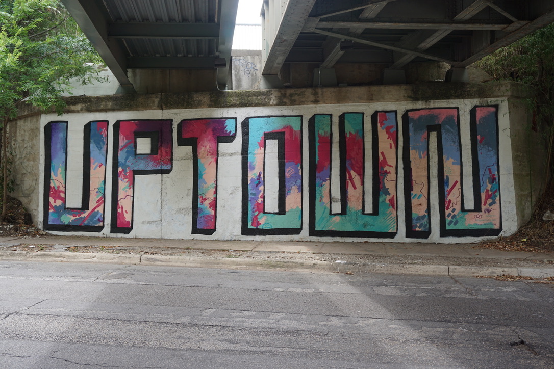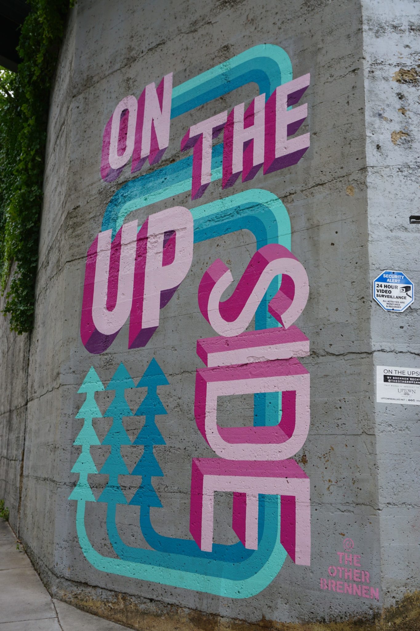 Lastly, the man behind the On The Upside mural on Bowen Street is Brennen Bechtol, a sign painter and muralist based in Oak Cliff. A trend for all of these paintings is positivity, working to make Uptown the best place it can be.