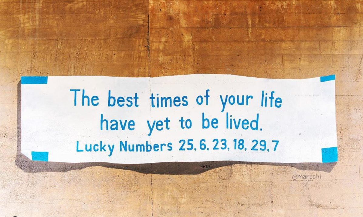 Another local artist whose work you can find all over Dallas is Mariel Pohlman. She painted the fortune cookie message on Blackburn Street, under the trail. Pohlman also collaborated with Mariell Guzman on the butterflies you see on Bowen Street. Guzman has painted several murals around DFW as well, most recently being an immersive painting on the exterior of El Arroyo in Arlington.