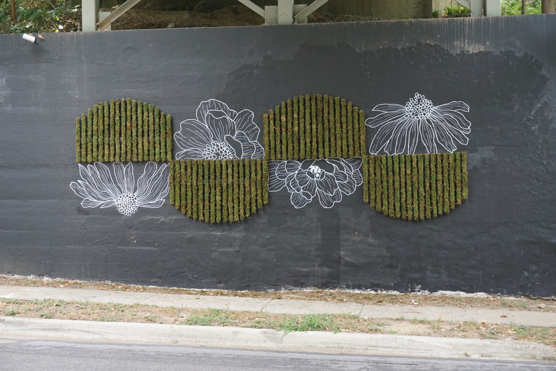 A new kind of mural’s appeared at the Katy Trail underpass on Hall Street. Dallas muralist Alli Koch collaborated with Arrowwood Designs on a living moss mural that’s situated against a black wall.