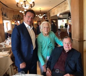 “I was so lucky afterward to have lunch with two of my greatest inspirations,” Schwarzenegger wrote on Instagram. “President Bush and Barbara have always put this country first and it will always be my great honor to call them friends and mentors. They inspired me to enter public service.”