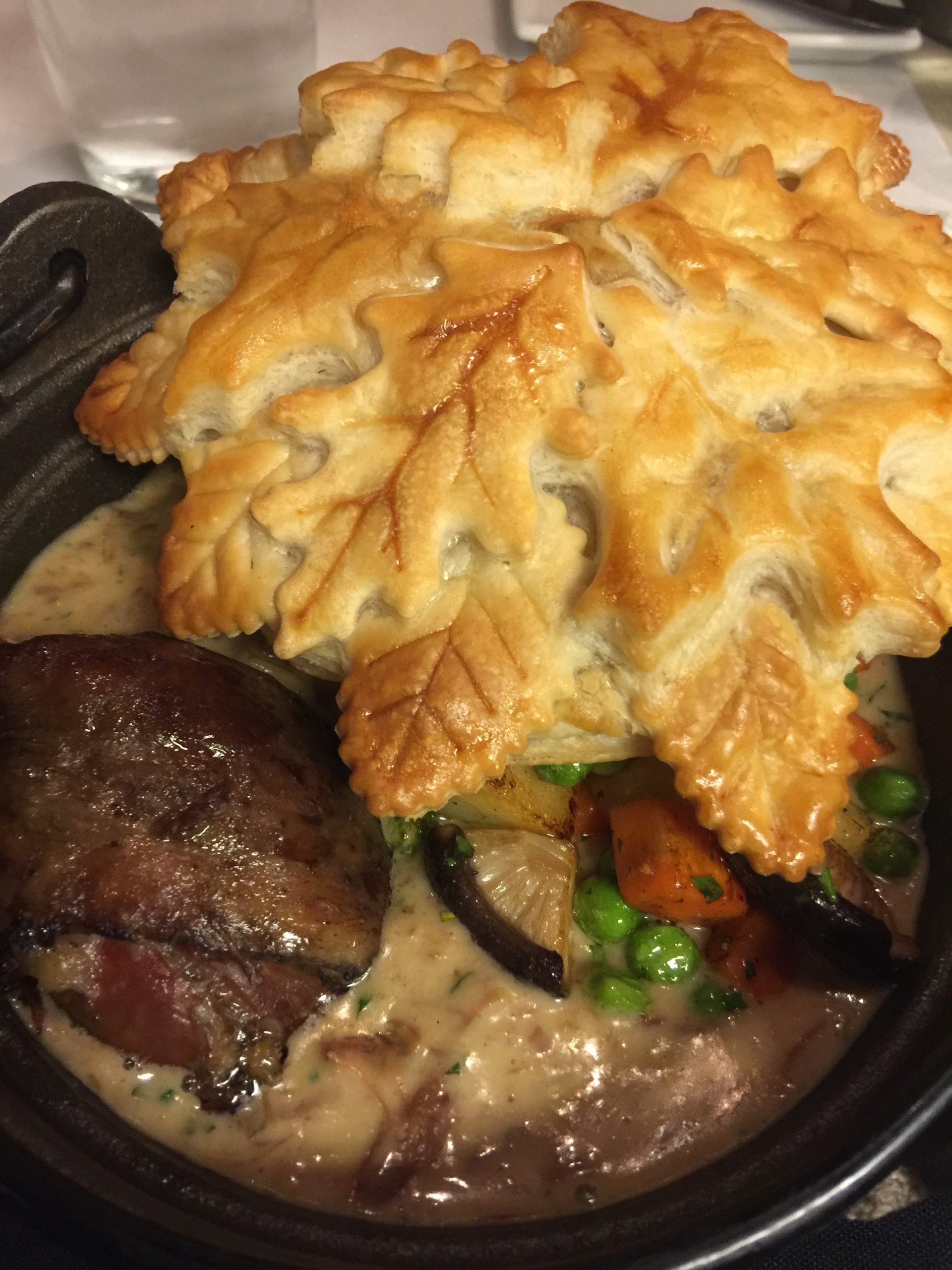 Kris Bistro & Wine Lounge has something on its menu now that works well for cooler evenings. They call it cassolette en croute, and it includes one of my favorite foods: duck. To begin with, it’s a beautiful dish. The pastry is a work or art, and the first glimpse of peas, carrots, and mushrooms (not to mention the duck) sparks the palate. That pastry, which partially covers the cocotte in which the dish is served, is light and airy, and is anything but decoration.