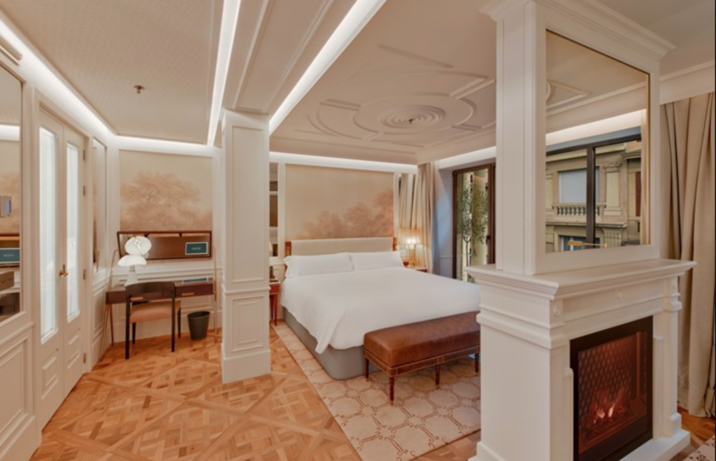 Heading the hotel restaurant is Michelin-starred chef Martín Berasategui. The hotel is located in the luxe Salamanca neighborhood.