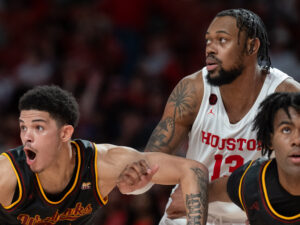 Reggie Chaney didn’t teach Jamal Shead how to pass. Chaney was always a willing passer in the post, but Manor Mal — UH’s All-American point guard candidate from the town of 19,000 in Austin’s shadow — brings his own unique gifts there. But the play that Shead makes in the second half — the play of the game, really — would have sure delighted Reggie for its bold gutty unselfishness.