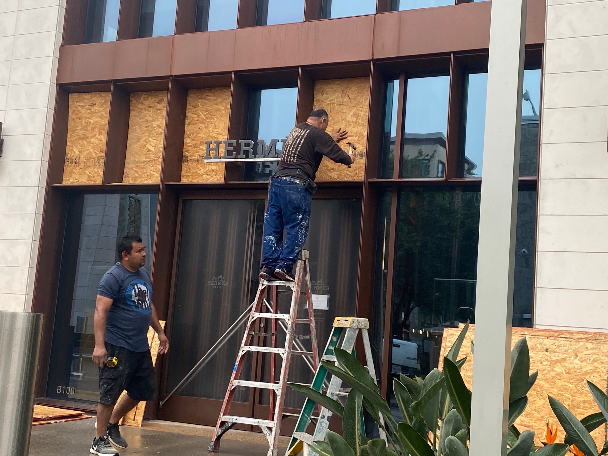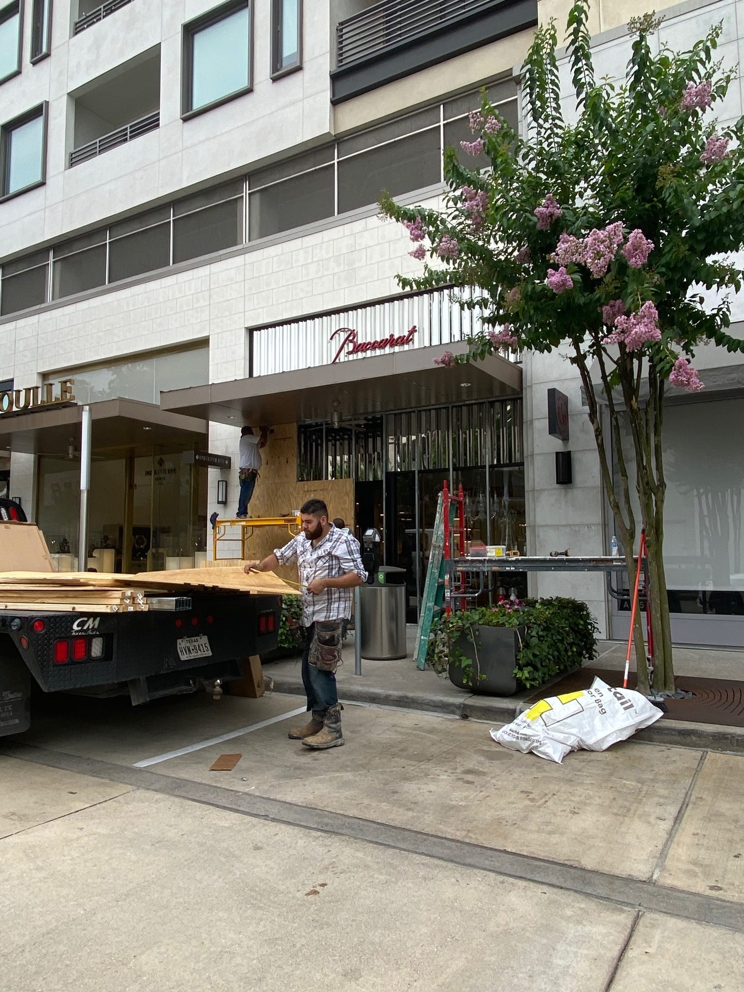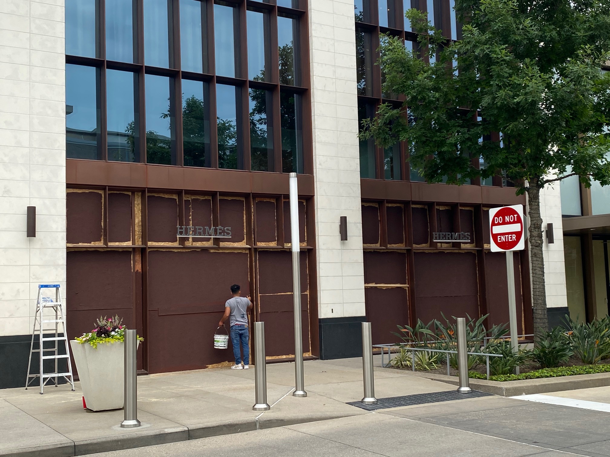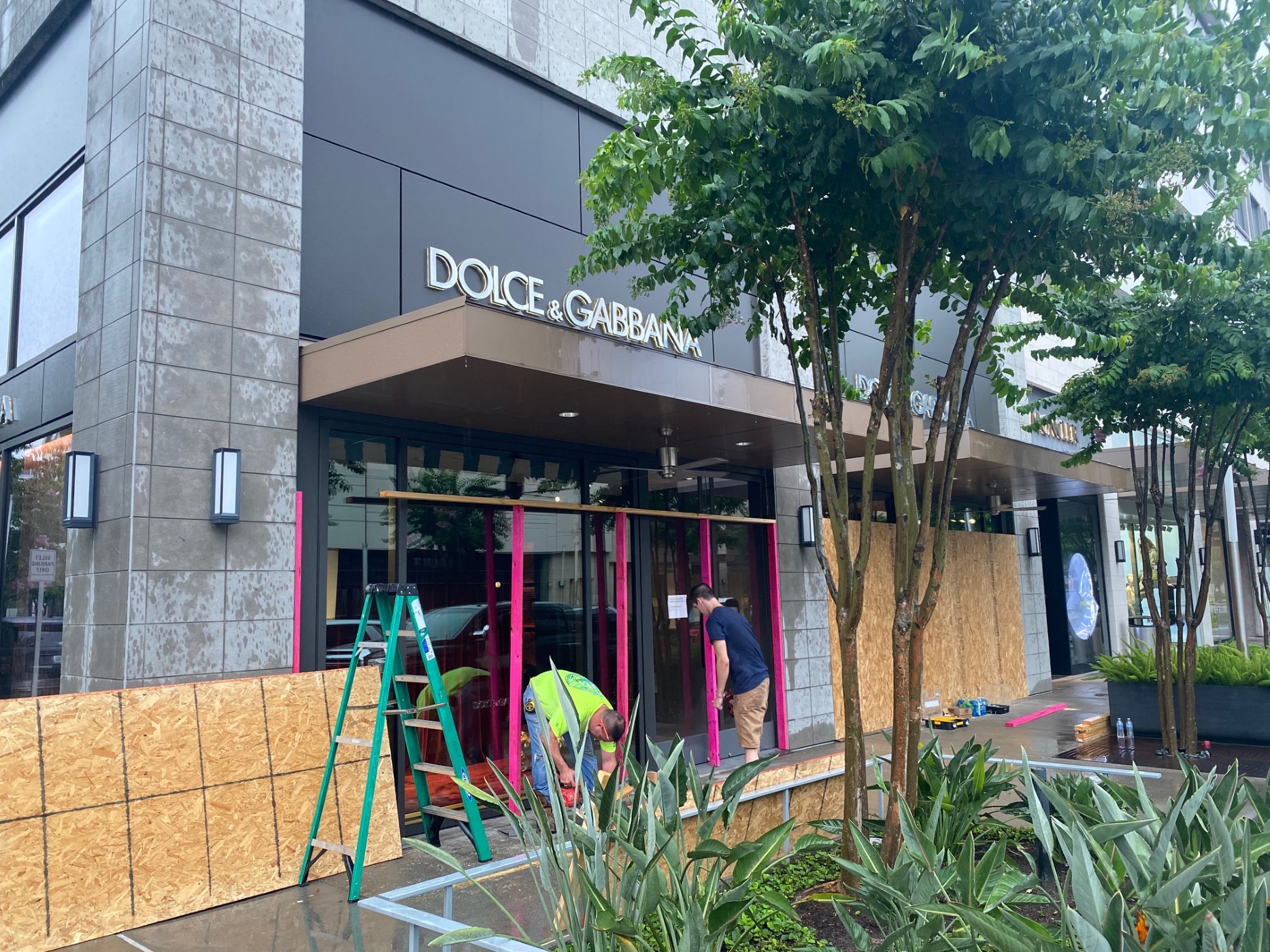A stroll through River Oaks District early Sunday evening revealed an eerie sight. Hermés, Cartier, Harry Winston, and Dolce & Gabbana were in the process of boarding up. Jo Malone and Dior virtually disappeared in a wall of imposing plywood. John Lobb, Canali and Brunello Cucinelli had emptied their stores of all visible merchandise.